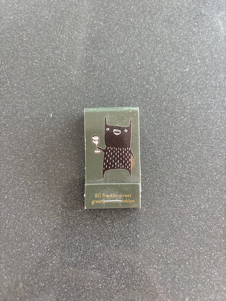 Sadly, I also love the now archival Cecily matchbox, a beloved Greenpoint wine-bar gone too soon. I always loved their playful, joy-invoking animal logo, and look back on it with fondness.