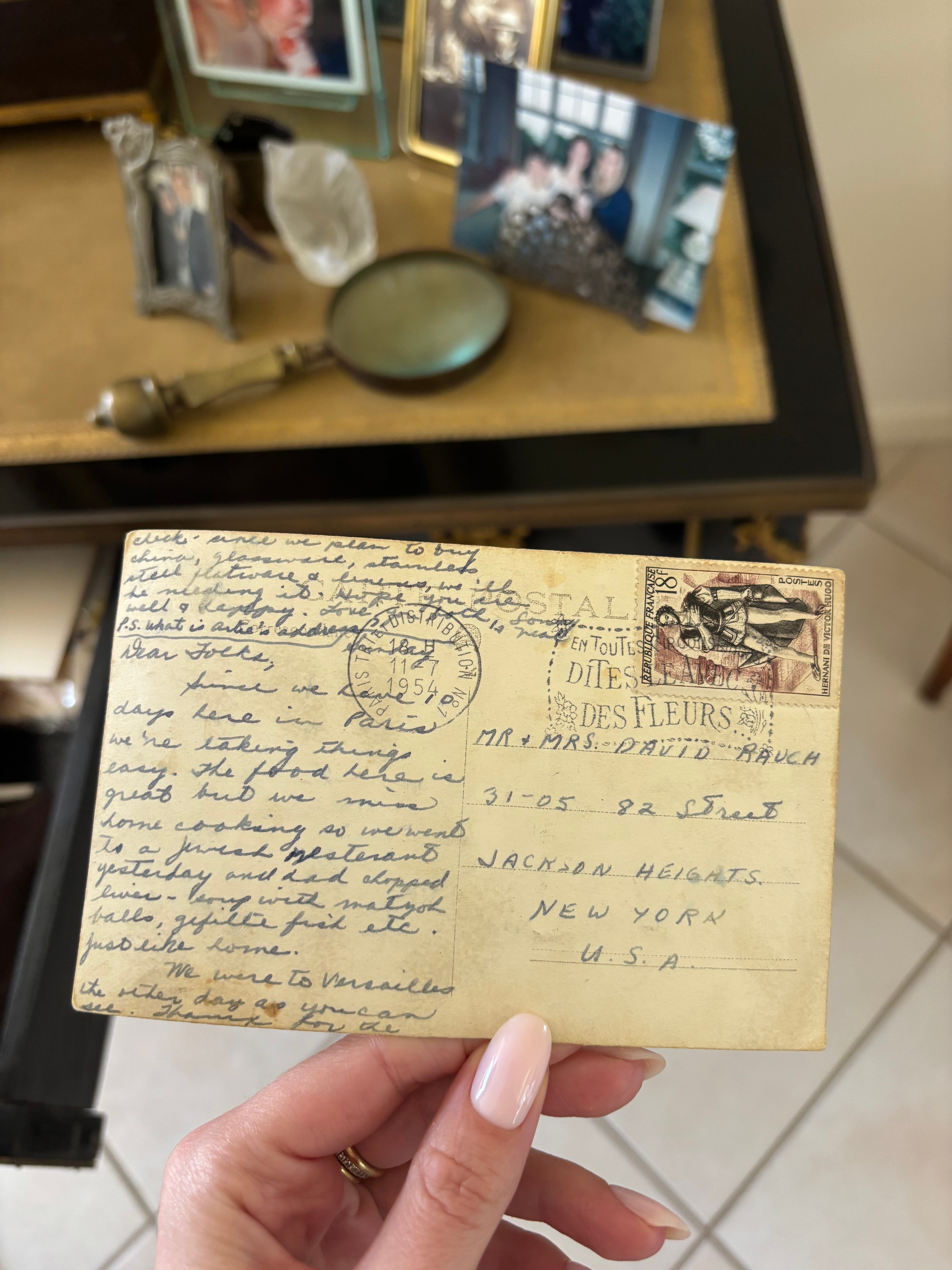 She showed me a postcard she wrote to her parents from Paris while on her honeymoon with my grandfather, sent back to Jackson Heights, Queens. In it, she describes long, leisurely French bistro meals and how much they were enjoying themselves, but also how much they missed home-cooked food.