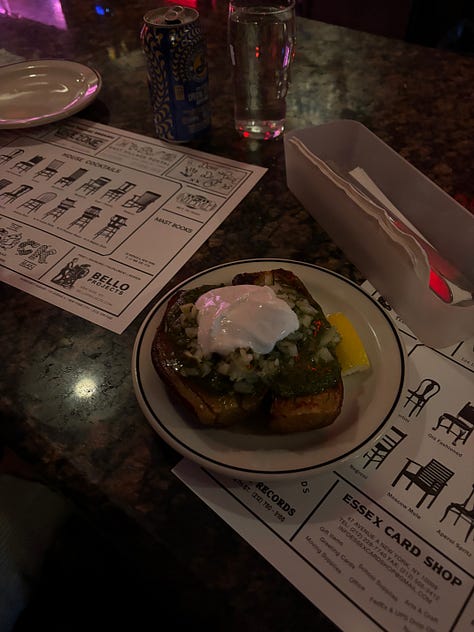 While it’s more known for brunch, Revelie is just as good for a laid-back dinner or a nightcap & dessert. The short menu leans on elevated comfort staples: think milkshakes, patty melt, a wedge salad. The cozy, counter-service setup naturally invites conversation, whether with your dining companion or the staff - who are both warm and exude an effortless cool that makes you want to hear their whole life story. I’ve been lucky enough to make a few friends over my visits, but this isn’t one of those “you have to know someone to get in” situations. They don’t take reservations, they’re unfussy, and they welcome everyone—and welcome them back.