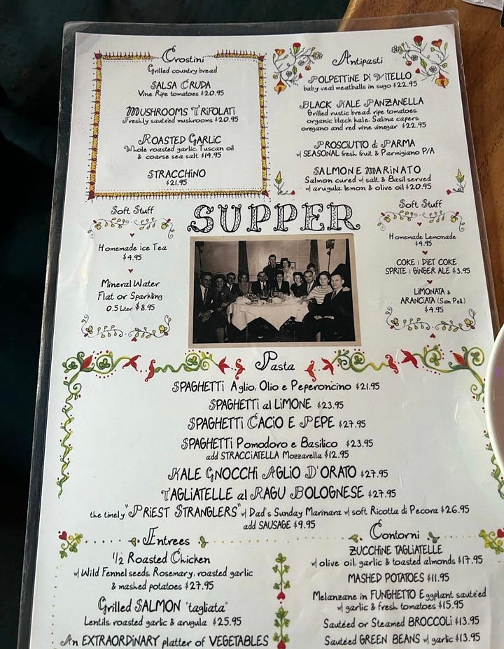Denino’s - A 100 year old NY landmark with very old-school Italian vibes where large tables are filled with even larger martini’s and thin crust pies.