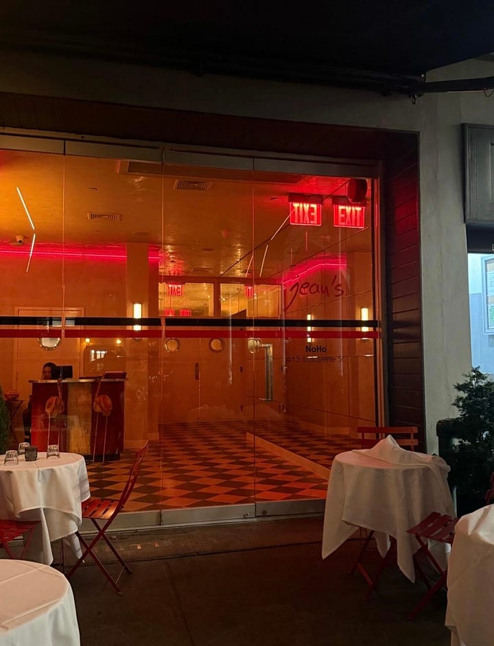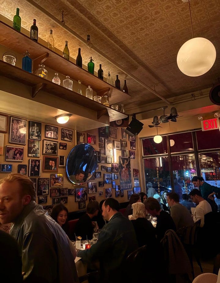 Lucien - A downtown classic that’s both overrated and a must-try. It’s loud, it’s smug, the waiters may ignore you, but it’s dinner and a runway with chaos and steak frites that never miss. Few rooms capture downtown 90s New York magic like this one.