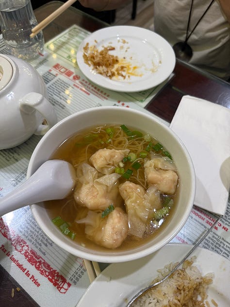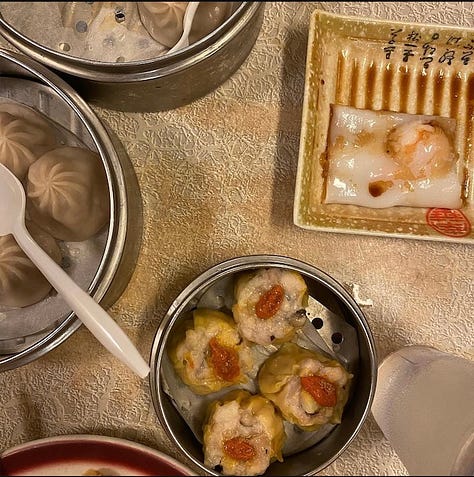 The formula’s simple — one dumpling spot, one steamed rice spot, one sit-down meal, and something sweet to finish (if your stomach allows).