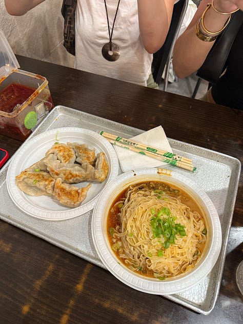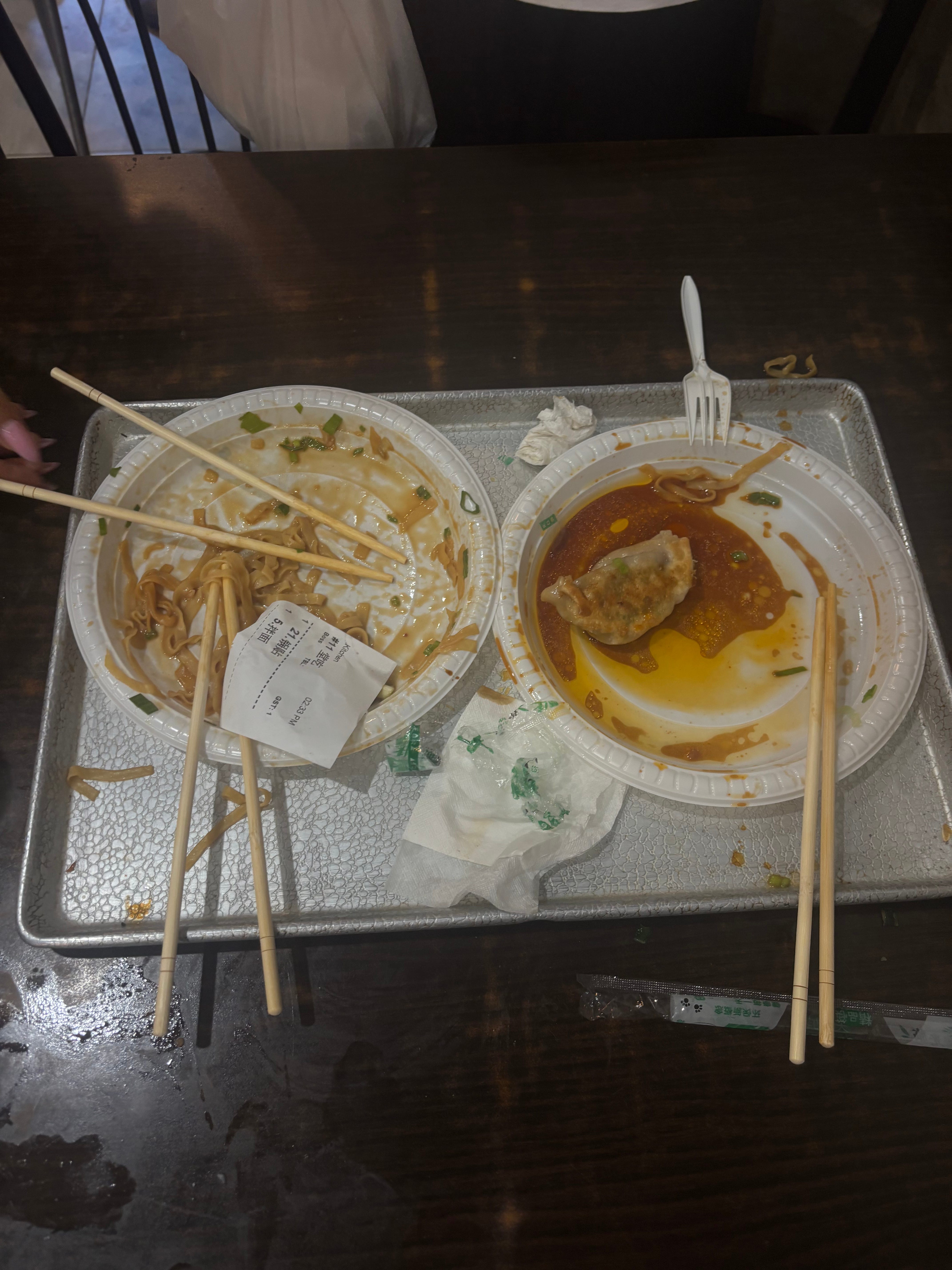 What to get: 8 steamed pork & chive dumplings and chili oil noodles ($9)